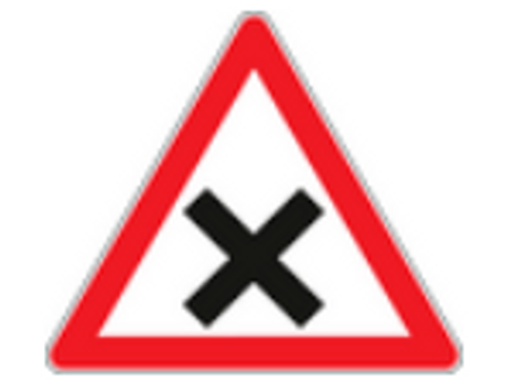 Şekildeki kavşakta karşılaşan araçların geçiş hakkı sıralaması nasıl olmalıdır?